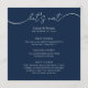 Unique Navy Blue Modern Script Wedding Menu with modern script and classic dinner menu options for guests. Personalize the text for your bar menu or add text for buffet menu.