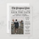 Extra! Extra! Share the news of your engagement with this unique Newspaper Save The Date postcard. Everyone will love receiving this fun Save The Date announcement! Include all of the important information on the front and back of this design. Add a photo to the front and details on the back. Crop and adjust the text how ever you would like! Select "click to customize further" to edit the design more!