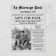 Announce your big day in style with this unique newspaper-themed Save the Date postcard! Designed to look like a classic front-page headline, “Le Marriage Post” captures all the charm of old-world romance with a modern twist.