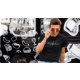 My 11 yo wore adult XL (5’7” 165#). The 8yo is small framed. She wore adult small and tied it in the back. Grandma wore adult large with long sleeve shirt underneath. Tall girl adult medium. Dark haired male adult large. Good quality dark Heather gray, Gildan brand shirt. -it was next up from basic choice and cost about $20 per shirt. Not too thick or thin. Washed and dried well, no major shrinkage. Not see-through. Can wear a bra under it fine. Screen print is just as shown and well done, front and back.