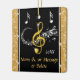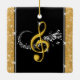 Unique Personalized Music Note Ornaments with her with Name and Year or Your Text or Delete. Pretty faux gold glitter look bording a large Treble Clef and Swirling Musical Notes Ornaments. You, or CALL Designer Linda: 239-949-9090 to CHANGE the Black and Gold Music Ornaments Background and Text COLORS. TRANSFER this design to your choice of THOUSANDS of other music themed gifts for music lovers. Musical Note Ornaments for Christmas or Any Occasion with Your Text or Delete any text or any part of the designs. Designer Linda will design this on your choice of THOUSANDS of other music themed gift ideas for her or him.