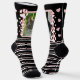 Show off your furry friends in style with our unique personalized pet photo women's crew socks! These fun socks feature custom pet portraits framed and decorated with paw prints and hearts. Add a different photo on each sock doubling the customization and creating trendy mismatched socks. The design includes playful pink and white stripes set against a bold black background, creating a vibrant and eye-catching look. A practical and heartfelt gift for pet owners, animal lovers, or anyone who wants to carry their pets with them wherever they go. Perfect gift for birthdays, holidays, or special occasions.