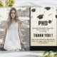 With its unique design elements, the Unique Photo PhD Graduation Party Thank You Postcard stands out as a memorable keepsake. The combination of the photo template, thank you typography, and festive graduation cap and confetti banner graphic creates a balanced and eye-catching design that perfectly captures the joy and achievement of your graduation day.