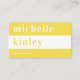 Simple elegant bold typography plain illuminating yellow and white minimalist networking business card with a wide horizontal stripe. Suitable for a teacher, writer, designer, photographer, consultant, makeup artist, hairstylist, life coach, or any other independent profession.