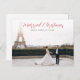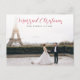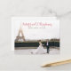 wedding announcement holiday card with elegant red script. The couples image can be personalized.
