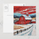 Unique Red Winter Barn Painting Postcard