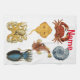 A medley of 6 sea creatures such as a crab, octopus, fish, sea shell, cuttlefish and skate. Each unique and interesting in their own way., customize with your own greeting, name, message, etc
