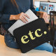The etc. Trendy Black & Yellow Bold Typography Laptop Sleeve combines style and functionality. With its striking black and yellow design featuring bold typography, this sleeve not only protects your laptop but also adds a modern touch to your tech accessories. Ideal for keeping your laptop safe and stylish during travel or everyday use.