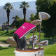 It's all about you with this beautiful golf putter cover design that is an elegant stylish representation of your name and monogram. Classic serifs and a more ornate script typography combine in a balanced and symmetry. The three elements blend together with a sophisticated harmony and create your own personal branding logo. Shown here with a trendy hot pink background with monogram elements in white and gray. These head covers tags make fabulous gifts for the lady golf enthusiast.
