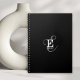 Unique Stylish Name and Monogram Typography Black Notebook