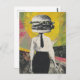 A mixed media collage of a woman with a cheeseburger for a head in black and white with a colorful background surreal unique AI generated art by Angelandspot
