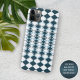 Contemporary white, teal blue, and gray colored distorted geometric argyle squares mosaic art pattern design. Beautiful, modern, and cool cover for the trend-savvy and art-loving hip trendsetter, artsy motif lover who wants to protect their phone from dust and dirt, wear and tear. This design is available Apple iPhone 6, 7, 8, 10 or X, XR, XS, 11, 12, 13 Mini, 14, 15 Plus, and Pro Max cellphone cases. Show off your style, look fashionable trendy, and feel stylish with a unique design on a mobile device accessory of your choice.