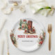 Traditional western style Christmas plates with watercolor illustration at red cowboy boots (may be at the Santa cowboy :) with Christmas presents holly berries. Easily personalize the text or leave it blank.