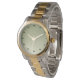 Very good quality watch that looks good whether dressing up or down. The band is sturdy. The watch is rather large so might not work for smaller folks. Recommended as a good gift. Printing is just a touch light but adds a nice touch of personalization.