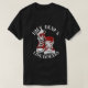 My 11 yo wore adult XL (5’7” 165#). The 8yo is small framed. She wore adult small and tied it in the back. Grandma wore adult large with long sleeve shirt underneath. Tall girl adult medium. Dark haired male adult large. Good quality dark Heather gray, Gildan brand shirt. -it was next up from basic choice and cost about $20 per shirt. Not too thick or thin. Washed and dried well, no major shrinkage. Not see-through. Can wear a bra under it fine. Screen print is just as shown and well done, front and back.