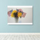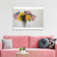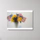 Three miniature USA Flags placed in a vase with flowers. Photographed and displayed on a Canvas wrap.