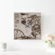 This wall clock features a vintage image from an old post card. It looks like it was picturing a horse and buggy mail delivery wagon from Route 1 in Connecticut .