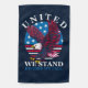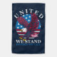 Flying eagle in front of the american flag. Patriotic graphic and text design.