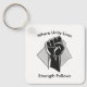 The key chain is made of metal and really sturdy. The flower design is really cheerful. The logo and colors are clear and crisp!