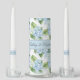 This candle unity set is shown with a blue hydrangea flower print with sample custom names.