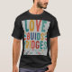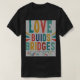 Celebrate the power of love and unity with our "Unity in Love" t-shirt design. Against a serene backdrop of soft blue, a graceful bridge stretches across the shirt, symbolizing connection and harmony. Silhouettes of diverse individuals stand on either side of the bridge, their arms intertwined in a gesture of solidarity and support. Each figure is adorned with vibrant patterns, representing the rich diversity within our communities. Above them, a heart-shaped sun radiates warmth and positivity, while below, the phrase "Love Builds Bridges" is elegantly scripted in bold, inspiring letters. Wear this design proudly to promote inclusivity, compassion, and the universal bond that love creates among us all.