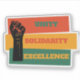 Celebrate Black History Month with this impactful square sticker featuring the words "Unity," "Solidarity," and "Excellence" in bold Pan-African colors. Complete with a raised fist graphic, this sticker is a symbol of strength, pride, and resilience. Perfect for decorating laptops, water bottles, notebooks, or as a thoughtful addition to event materials. Show your support for Black heritage and promote empowerment with this meaningful design.