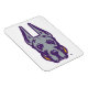 This design is a close-up of the University at Albany Great Dane mascot head. The illustration uses bold purple outlines with detailed shading in gray for the Great Dane's face, highlighting its angular features. The eyes are sharp, and the expression conveys alertness and strength. Accents of gold appear on either side of the dog's jaw, adding a touch of warmth to the otherwise fierce look. The ears are upright and pointed, reinforcing the logo's sense of readiness and authority. The design is minimal yet powerful, ideal for branding UAlbany’s athletic identity.