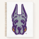 This design is a close-up of the University at Albany Great Dane mascot head. The illustration uses bold purple outlines with detailed shading in gray for the Great Dane's face, highlighting its angular features. The eyes are sharp, and the expression conveys alertness and strength. Accents of gold appear on either side of the dog's jaw, adding a touch of warmth to the otherwise fierce look. The ears are upright and pointed, reinforcing the logo's sense of readiness and authority. The design is minimal yet powerful, ideal for branding UAlbany’s athletic identity.