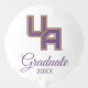 The The University at Albany initials logo features a bold and dynamic "UA" design, rendered in the university's signature purple and outlined with a striking gold border. The angular, block-like letters give the logo a strong and authoritative appearance, perfect for representing school pride and identity. The symmetrical and geometric structure of the letters conveys a modern and professional aesthetic.
