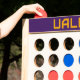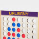 The University at Albany wordmark features bold, geometric typography in purple with gold outlines. The text is written in all capital letters, forming a strong and modern style that emphasizes the university's identity. The angular lines and sharp edges of the font create a sense of power and professionalism. The gold outline adds a touch of prestige and visibility, making the wordmark stand out on both light and dark backgrounds. This design is perfect for branding athletic teams, merchandise, and university-related media.