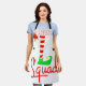 Great color and even though I ordered the kid size, it covers well enough to use during the holidays. I am not a big woman and prefer a shorter apron. I stand 5"6" and the length of the garment goes to mid-thigh. The tie straps fit well at my waist and even though there is no neck strap adjustment, the opening is plenty big enough. I am happy with the size and fit. I am sharing my apron with my 10 year old grandson, too! The color is vibrant and looks good, as shown on the website. The stitching looks strong and reinforced. Photographed is front side and back side of the apron, reinforced straps and coloring. My phone camera may not be the best at showing the details.