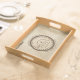 This is a well made, sturdy wooden tray with a flawless black finish and lovely map on the tray surface. It is both vintage & modern at the same time. Looks exactly like the photo; does not disappoint. So nice to find something of quality individually made and not the mass-produced 'shabby chic' merchandise seen in stores. I am so pleased to be able to give this to my college-age niece for her birthday. This can be used as a tray to hold jewelry or toiletries, or hung on the wall as art. The map surface is sealed (it is slightly shiny) so would be moisture resistant. It is well worth the asking price but I was able to apply a sale code as well. Very happy with my purchase. Map is crisp & clear and sealed with a water-resitant finish.