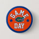 This spirited button design proudly showcases support for the University of Florida Gators! Set against a bold orange background with a vibrant blue border, it features the iconic Gators mascot head in striking green. The words "GAME" and "DAY" are prominently displayed in white, bold lettering, perfectly capturing the excitement of game day. Two blue stars flank the Gator head, adding to the energetic display. This impactful and recognizable design embodies the competitive spirit and strength of the University of Florida's athletic teams.