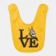 First of all, the shipping was fast. This bib was everything I had hoped for. It has such a smooth feel to it and is machine washable. The colors are vivid and the image quality is just as pictured on the web. Will be happy to give this as a New Baby gift !