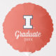 The design features the University of Illinois's iconic block "I" logo in a bold, vibrant orange color, outlined with a dark blue border. The letter "I" is centered and designed in a simple, geometric, block style. A small orange trademark symbol (®) is positioned in the lower right corner of the "I," signifying the logo's official trademark status. The design is clean and minimalist, symbolizing the university's branding, with the colors orange and blue representing the University of Illinois.
