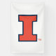The design features the University of Illinois's iconic block "I" logo in a bold, vibrant orange color, outlined with a dark blue border. The letter "I" is centered and designed in a simple, geometric, block style. A small orange trademark symbol (®) is positioned in the lower right corner of the "I," signifying the logo's official trademark status. The design is clean and minimalist, symbolizing the university's branding, with the colors orange and blue representing the University of Illinois.