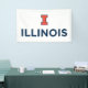 This design features the University of Illinois's block "I" logo in orange with a dark blue outline positioned with the word "ILLINOIS," which is written in bold, uppercase, dark blue letters. The block "I" symbolizes the university’s identity, while the wordmark uses a simple, clean font for clarity and professionalism. The logo and wordmark are combined with the university’s athletic and academic branding elements. The design uses the official school colors of orange and blue, representing the institution’s heritage.