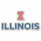 This design features the University of Illinois's block "I" logo in orange with a dark blue outline positioned with the word "ILLINOIS," which is written in bold, uppercase, dark blue letters. The block "I" symbolizes the university’s identity, while the wordmark uses a simple, clean font for clarity and professionalism. The logo and wordmark are combined with the university’s athletic and academic branding elements. The design uses the official school colors of orange and blue, representing the institution’s heritage.