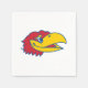 This close-up logo features the head of the iconic Jayhawk mascot of the University of Kansas. The design is bold and expressive, with the Jayhawk’s face outlined in blue. The bird’s head is red, while its large beak is bright yellow, giving it a vibrant appearance. The Jayhawk’s eye is blue and white, showing a sharp, confident look. This logo is simple yet instantly recognizable, representing the proud spirit of the university and its athletic teams.