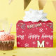 This vibrant holiday-themed pattern celebrates the University of Maryland with various iconic elements. At the center is the bold red "M" logo, surrounded by the Terrapin mascot holding an "M" shield, the word "TERPS," a Maryland football helmet, and the full "Maryland" text adorned with state flag accents. Red snowflakes are scattered throughout the background, adding a festive and spirited touch to this design that showcases Maryland pride.