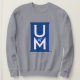 This graphic isolates the official academic and institutional mark of the University of Memphis: the distinctive UofM monogram. Presented within a bold Memphis Blue rectangular block, the design features a stylized white 'U' and 'M' elegantly framing the central, contrasting grey 'of'. This clean, sophisticated, and instantly recognizable symbol embodies the core identity, academic standards, and established prestige of the University of Memphis, serving as its primary formal visual identifier.