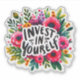 A colorful arrangement of blooming flowers surrounds the powerful message to invest in yourself. The design features lush greenery and bright hues, embodying positivity and growth in a joyful celebration of self-care and personal development.