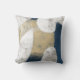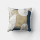 A large abstract shape in navy blue covers the canvas edge to edge with cutouts revealing a textured white background. A worn, textured beige area sits over the blue shape while white lines twist like rope in a dynamic finish to the piece.