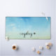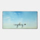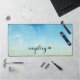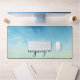 Calming desk mat featuring blue skies and the word UNPLUG.