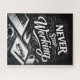 This striking black-and-white magazine-style design captures the essence of dedication and perseverance through its bold typography and clean visual composition. The phrase “Never Stop Working” stands at the center in an artistic, decorative style, symbolizing continuous effort and an unbreakable mindset.
