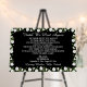 An elegant funeral memorial celebration of life sign with White Flowers and a poem.