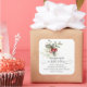 Modern Christmas square sticker with inspirational quote scripture depicts a simple floral design with red berries and greenery. It features a portion of Bible Verse Isaiah 9:6, "For unto us a child is born. He will be called Wonderful Counselor, Mighty God, Everlasting Father, Prince of Peace."