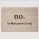 Keep it simple, keep it direct—this "No." coir doormat says everything you need without saying a word. Perfect for those who enjoy a little humor (and a lot of personal space), this doormat features a customizable placeholder for your family name, making it both personal and hilariously unwelcoming. Whether you're an introvert, a homebody, or just someone who appreciates a good joke, this doormat adds a fun, sarcastic touch to your entryway, porch, or patio. A great gift for anyone who believes that sometimes, the best greeting is just No.