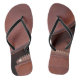 The design of these flip flops, were inspired by rich brown leather and an unzipped brass zipper, has the look of fine leather with piping and stitching. Definitely an unisex design.