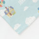 A charming baby blanket design inspired by Disney and Pixar’s Up, featuring a repeating pattern of the iconic floating house lifted by colorful balloons. The house drifts among fluffy white clouds against a soft pastel blue background, creating a dreamy and adventurous atmosphere. Each house illustration is paired with customizable text for the child’s name, making this blanket a personalized keepsake. Perfect for Disney fans, baby showers, or adding a whimsical touch to a nursery.
